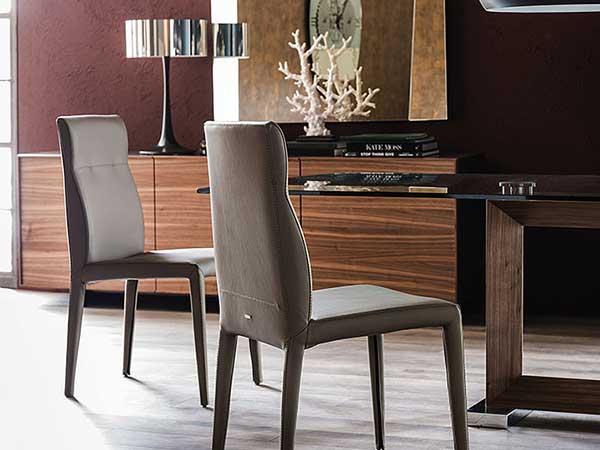 Chair with steel frame upholstered in fabric, synthetic leather, synthetic nubuck or soft leather as per sample card. Flexible back rest.