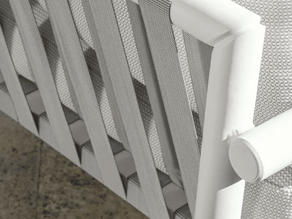 The Ake 2-seater sofa enriches the outdoor environment with elegance and originality, thanks to the particular design that recalls the natural shapes of the bamboo plant. The supporting structure is made up of tubular aluminum modules, which connect with each other with an interesting cast knot, similar to the rigid rings, but at the same time sinuous that characterize the bamboo rod.