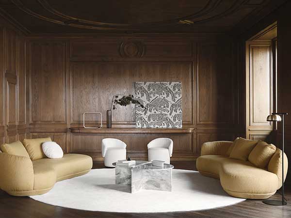 Alfiam is a sofa with sinuous and sensual shapes. Inspired by organic shapes that recall the seventies design, It transforms any space into an elegant and refined landscape by becoming its protagonist.