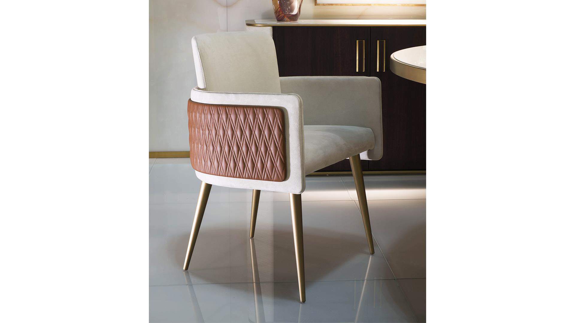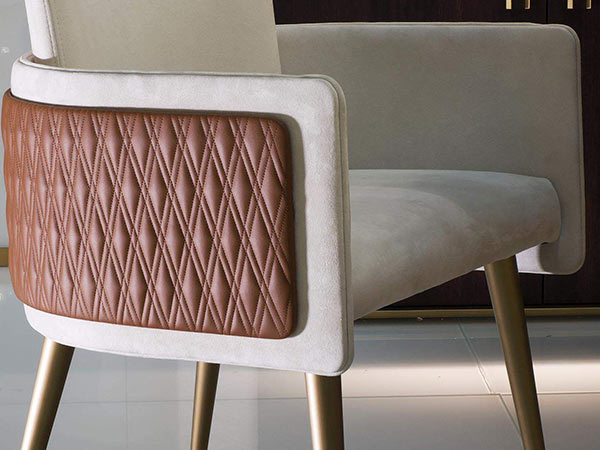 Italian crafted dining chair with padded seat and adjustable back for ultimate comfort. Various fabric and leather preferences and leg finish options.