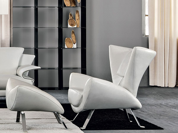 Upholstered armchair with an adjustable back, it can be covered with fabric or leather from our collection.