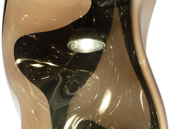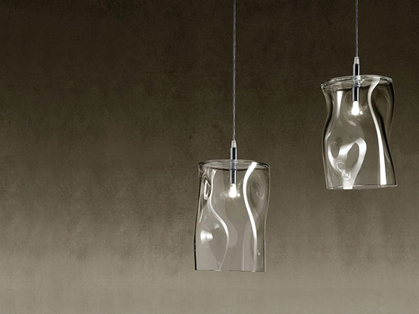 Pendant lamp in transparent, grey, tobacco or amber-iridium Murano glass. Mirror ceiling support. LED light.