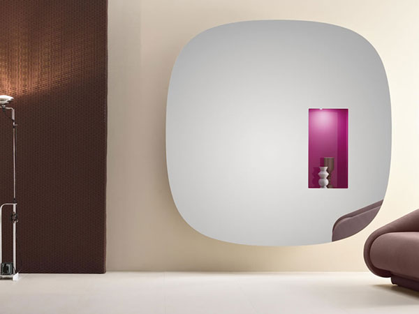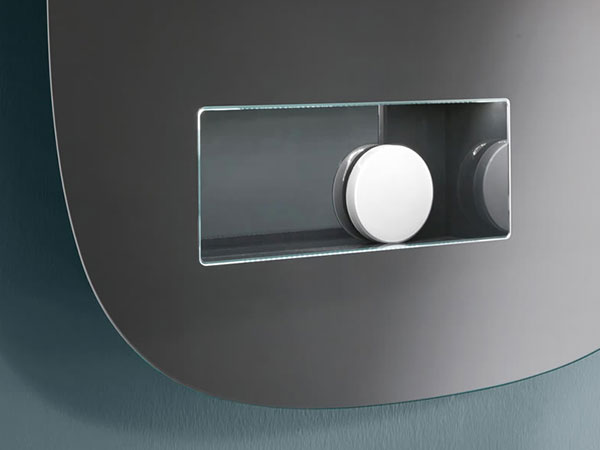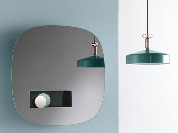 Wall mirror of minimal design provided with a useful catchall compartment, available in different colours, equipped with Led lighting with motion detector.