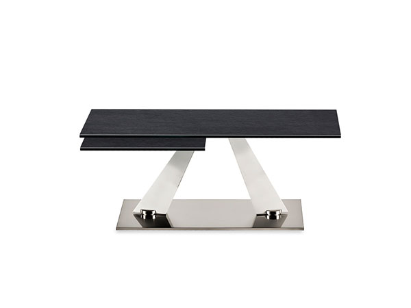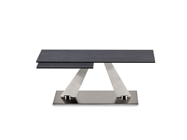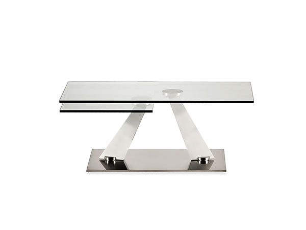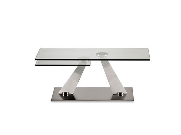 EXTENSIBLE COCKTAIL TABLE WITH SYNCHRONIZED REVOLVING GLASS TOPS. BASE AND SUPPORTS IN GALVANISED OR PAINTED STEEL. AVAILABE ALSO WITH CERAMICS TOPS.