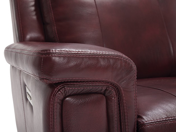 Perfect for relaxing with the family, the Ashley collection highlights all the benefits of modern upholstery. Deep, plush, seats designed to sink into are complemented by a lumbar support that offers a soft yet structured seat. Featuring a power headrest and footrest, personalized comfort is made easy through an easy-to-use switch. The Ashley collection boasts plush fiber-filled back cushions that are topped with a layer of memory foam that molds to the body. Highlighted by a topstitch detail that offers added comfort and visual appeal to the collection, the back cushions are complemented by plush pillow-top arms. The power headrest, recline and lumbar functions are easily managed through the use of a sleek activation switch that includes USB charging. With each button shaped differently, touch-identification is easy. A convenient home button, activated with a single touch, will return all power functions to the fully closed position.
