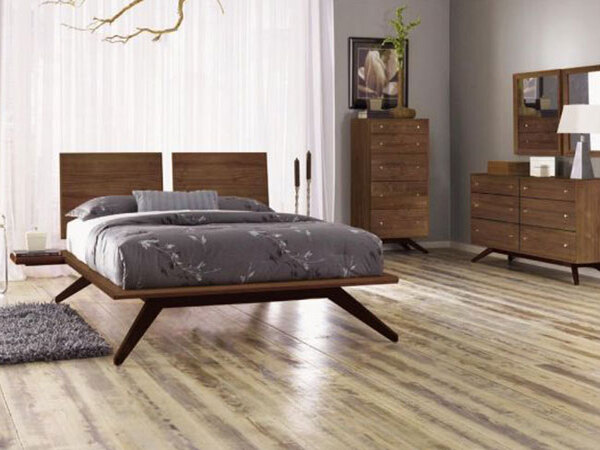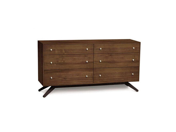 The Astrod 6 W Bedroom is crafted in solid walnut and dark chocolate maple bases and Made to Order with a variety of knob or pull options. Astrod 6 W dressers and chests feature soft-close, self close drawer glides. The Astrod 6 W Bedroom is also crafted in solid cherry with several finish options. The finish is GREENGUARD Certified for low chemical emissions.