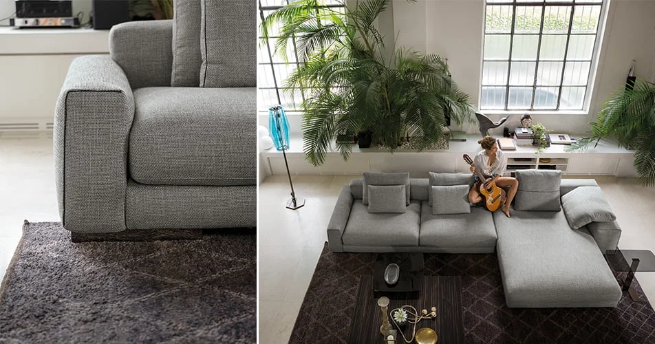 Stylistic and aesthetic inspirations are at the heart of the Atlax sofa.‎ A design with interplanetary force in which diversity becomes an added value.‎ Shapes and forms meet each other and are combined in an imaginary space creating a setting in which thin and thick arms, high and low backs, corner units, chaise-longues and accessories blend together.‎