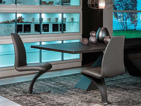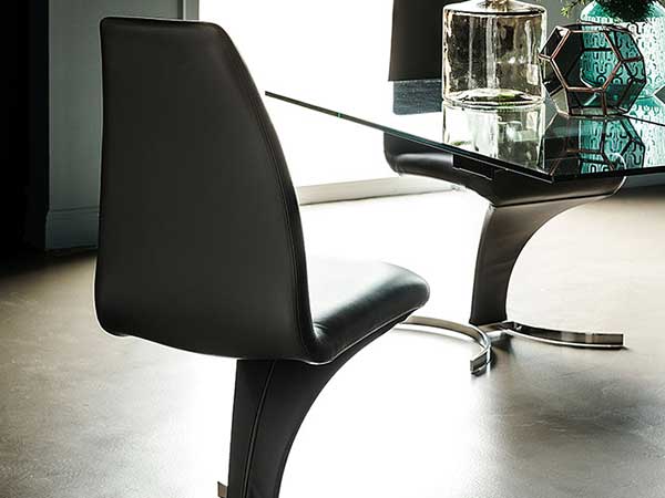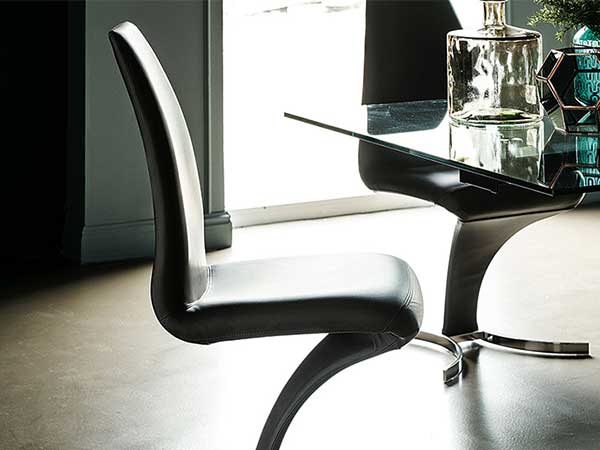 Upholstered chair with steel frame and cover in fabric, synthetic nubuck, micro nubuck, soft leather or synthetic leather as per sample card. Matt white (OP71), black (OP17), graphite (OP69), chromed (08) or titanium (GFM11) embossed laquered steel base. The cover is not removable.