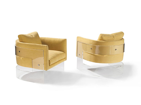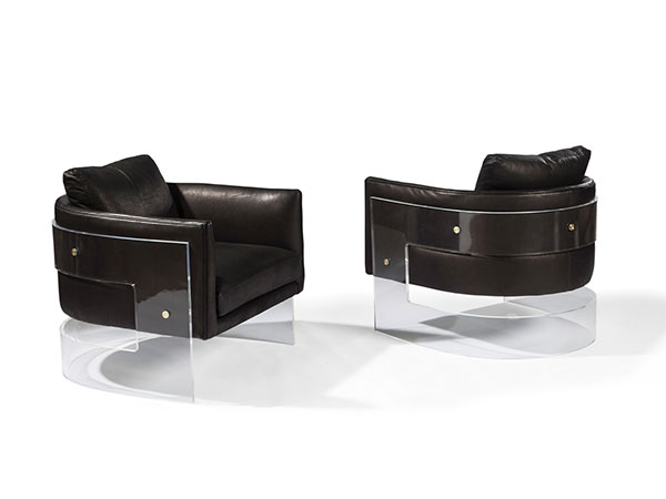 The iconic Bonito chair, an acrylic and upholstered lounge chair originally conceived by Milo Baughman in 1969, is a modern classic. Bonito showcases Baughman’s masterful integration of diverse elements – upholstery, acrylic and metal accents – to create a work of art that is comfortable to sit in. The Bonito chair makes a statement of style and grace with masterful, midcentury modern design that is both timeless and luxurious. Choose from any of our in-house curated fabrics and leathers or provide COM. Decorative metal discs available in brushed stainless, brushed bronze and satin brass. Must specify.