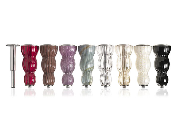 Legs in Murano glass, transparent or gold or personalized matching the leather colour.