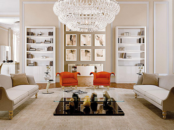 Seat cushions with feather padding and polyurethane insert available in fabric, velvet or leather, plain or with San Marco quilting.