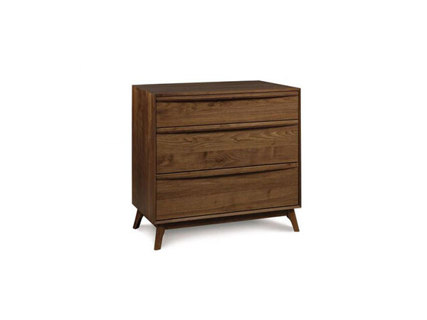Catalina 3 dressers and chests feature soft-close, self close drawer glides. The Catalina 3 Bedroom is crafted in solid American black walnut hardwood with natural finish and Made to Order with a variety of knob or pull options. The Catalina 3 Bedroom is also crafted in solid cherry with natural finish. The finish is GREENGUARD Certified for low chemical emissions.