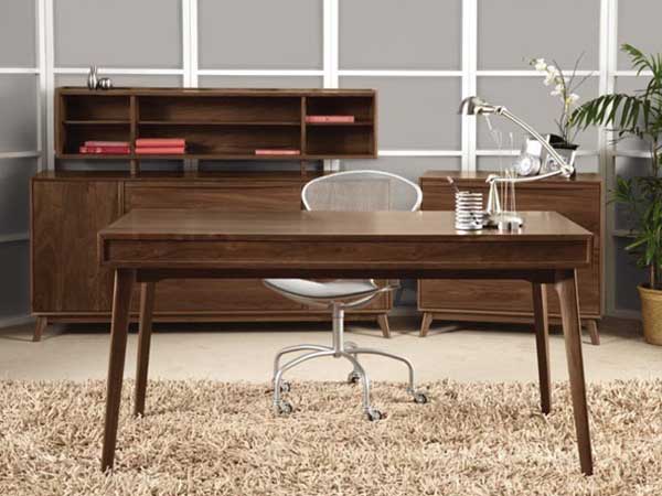 Combining the clean, unadorned lines of the International Modernists with organic and geometric forms, the Catarina Collection is suggestive of the works of America’s Mid-Century Modern designers. The years following WWll were a time of uncertainty but also of great hope and progress. Designs of the period reflected that sense of hope and the promise of an ideal future. In our current period, one finds comfort and nostalgia in Catarina’s retro-modern shapes and sensibilities. Catarina Home Office includes a sleek desk that features a drop-front keyboard tray/drawer. The Catarina Home Office is crafted in solid American black walnut hardwood with natural finish and Made to Order with a variety of knob or pull options. The finish is GREENGUARD Certified for low chemical emissions.