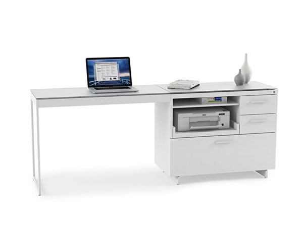 Making the most out of a compact space, this cabinet combines a lateral file drawer with a sliding printer shelf and two storage drawers, keeping everything conveniently within reach.