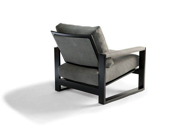 Our Chucky lounge chair is a Milo Baughman classic with its dramatic, geometric metal frame and sumptuous seating and support. Originally designed in 1972, Chucky features a thick and stout brushed bronze frame, padded arms and luxurious poly blend down seating. Choose from any of our in-house curated fabrics or leathers for upholstery or provide COM. Also available with a polished stainless steel frame as No. 1372-103 or with a dark bronze frame as No. 1372-103-DB.