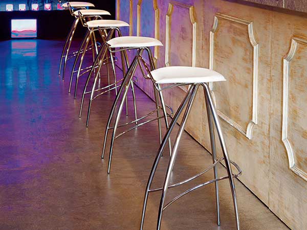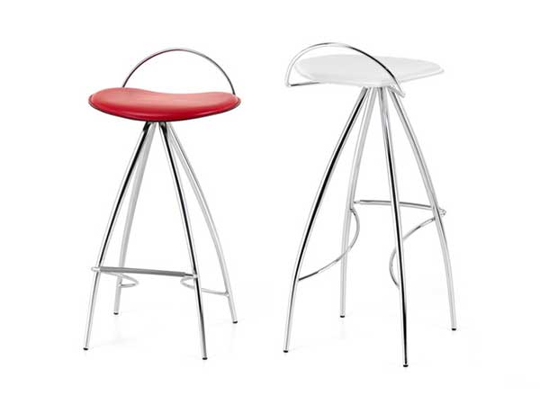 Stool with chromed (08), black chrome (06), black (OP17), white (OP71) or graphite (OP69) lacquered metal frame and seat in leather as per sample card. Standard stitching.