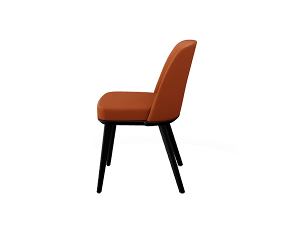 The new padded chair exudes a sensation of comfort and invites you to sink in and relax. With a cocooning padded seat shell in curved plywood and a soft seat structure with elastic belts, it is set on a refined wooden base resting on four conical legs and comes in shades that are a faultless match to the seat shell finish in fabric.