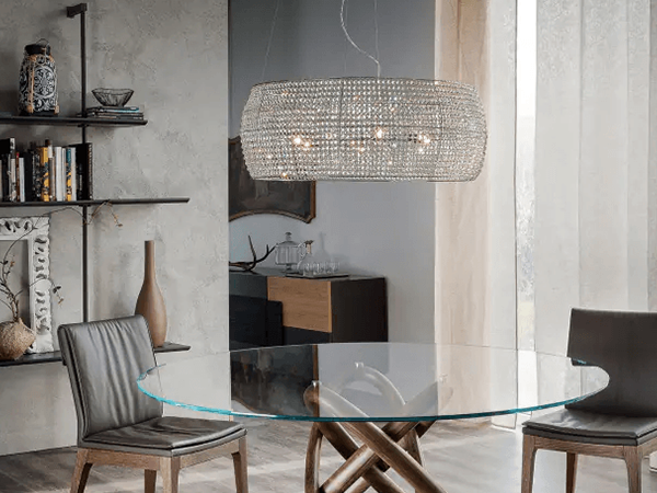 The Dalki chandelier is a modern interpretation of bygone luxury and timeless elegance. The crystal chandelier is full of contrasts and features a simple spherical shape that’s boldly countered by the seemingly interwoven crystals. With a combination of light and dramatic shadows, it makes this a one-of-a-kind light fixture.
