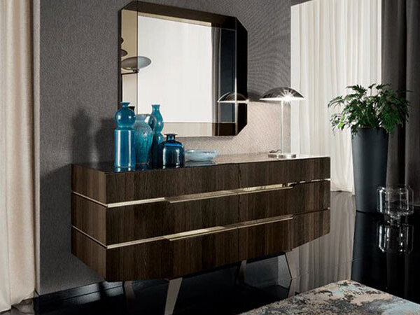 The Demia Dresser is very luxurious and emphasizes modern design. This dresser features a Termocotto Oak finish and elegant Gold accents.