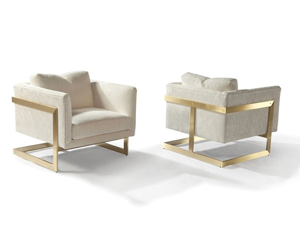 Originally designed in 1968 by Milo Baughman, this handsome cube lounge chair, also known as the “T-Back Chair” is a timeless classic of the modern era. Available in brushed bronze finish, polished stainless steel or satin brass finish. Select from any of our in-house curated fabrics or leathers for upholstery.