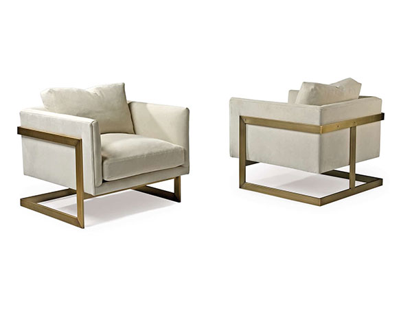 Originally designed in 1968 by Milo Baughman, this handsome cube lounge chair, also known as the “T-Back Chair” is a timeless classic of the modern era. Available in brushed bronze finish, polished stainless steel or satin brass finish. Select from any of our in-house curated fabrics or leathers for upholstery.