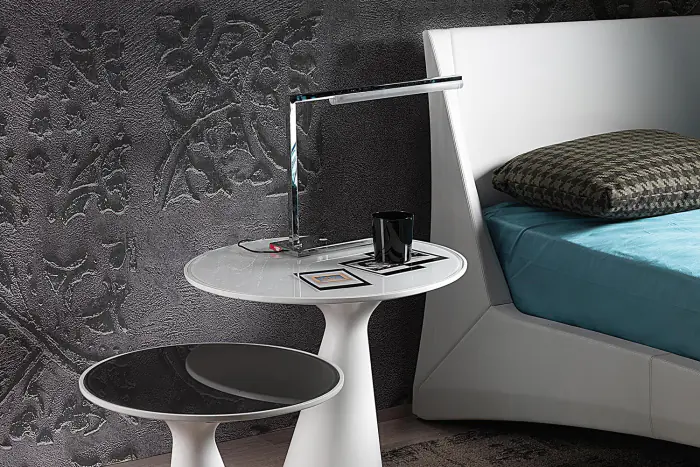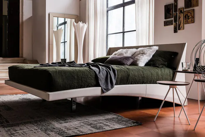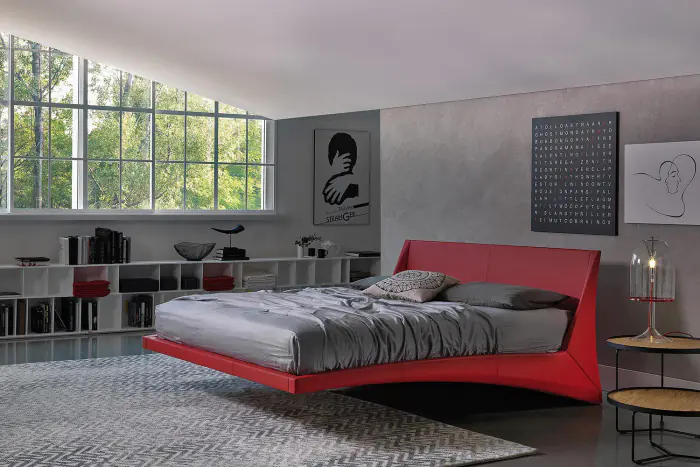 The design of the Dynamic leather bed is driven by extreme engineering, rigorous geometry, and basic laws of physics. With an extraordinary and innovative modern structure that gives the illusion of being suspended in the air, the bed is an emblem of originality and a sign of exquisite Italian taste.