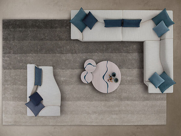 A collection of low tables, tables, desks and furniture featuring a wooden top with a laser-cut metal insert, and a metal base.