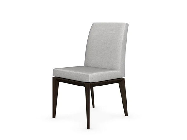 This model chair with wooden frame and an upholstered seat covered in fabric. Together with the higher version, this will become the hero of your dining area. The solid ash wood legs and sides feature a nearly triangular faceted shape, while the upholstered seat covered in fabric is fitted with elastic belts for unrivaled comfort.