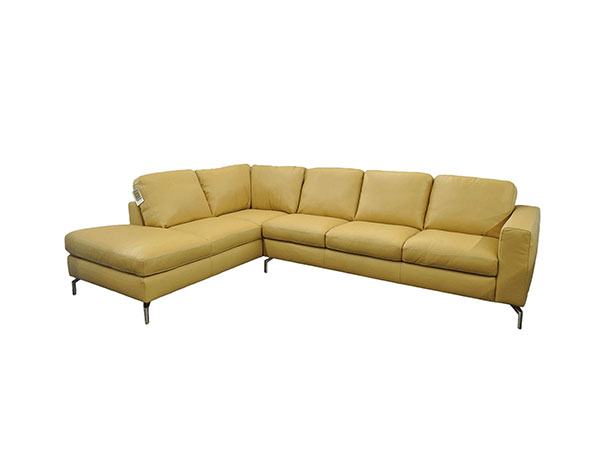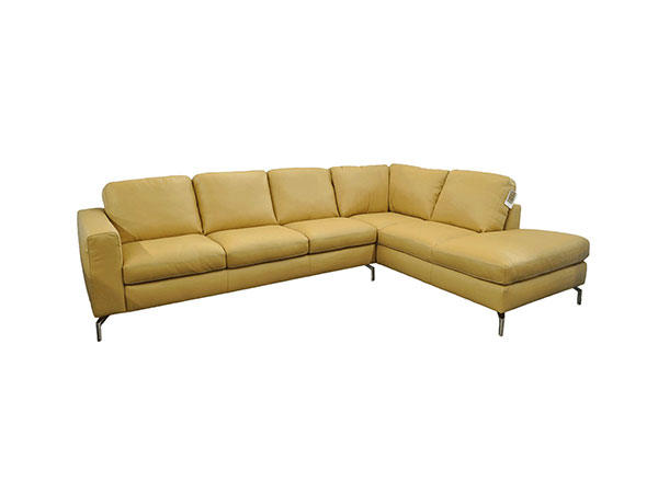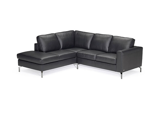 Enjoy the sleek, modern look that the Evo can give any of your living spaces. The Evo is upholstered entirely out of 100 percent top grain leather that can be found all over every visible inch of the furnishing. This leather is supple and smooth by nature, and will age gracefully and become even more so in time. This Sectional features a two-over-two cushion design with large, comfortable, plush seats that will accommodate anyone. On either side of the cushions of this sofa are large, wide track arms. These track arms are the perfect size for resting against as they give you plenty of elbow room. Slim metal feet support this Sectional in order to add to its minimalism.