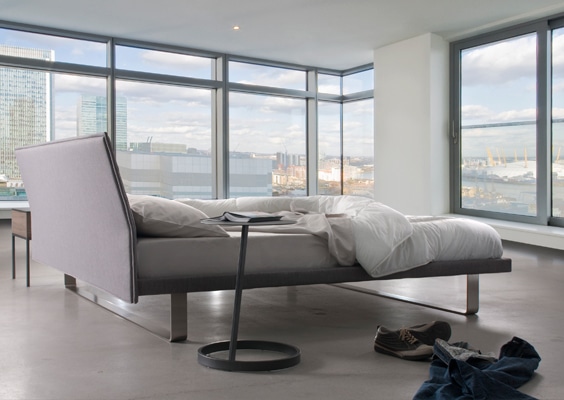 Pure, dynamic, well defined lines are the essence of the Evva bed. With two possible designs for the base and a large selection of fabrics for the upholstery, the Evva can adapt to your own personal desires.