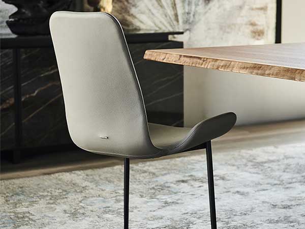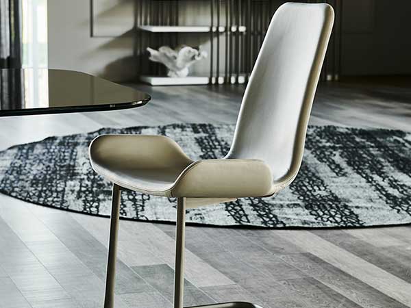 Chair with cantilever frame in titanium (GFM11), graphite (GFM69), white (GFM71) or black (GFM73) embossed lacquered steel. Upholstered seat in fabric, synthetic nubuck, micro nubuck, synthetic leather or soft leather as per sample card. The cover is not removable.