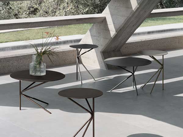 Flexoma Small tables are available in two different heights and three finishing. If combined together, they create an interesting play on dimensions, allowing each client to furnish their own living room in a functional manner, with a personal touch.