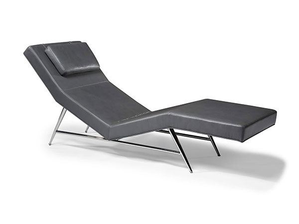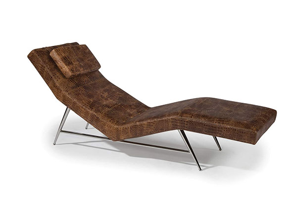 Believed to be one of Milo Baughman’s original design proposals to Thayer Coggin during their initial meeting in 1953, our Fred chaise is a visionary, midcentury modern classic. This imaginative chaise features a wedged leg base constructed of highly polished stainless steel paired with a thin profile upholstery frame. Choose any of our in-house curated fabrics or leather for upholstery or provide COM. Available with satin brass base as No. 1231-400-SB or with brushed bronze base as No. 1231-400-B.