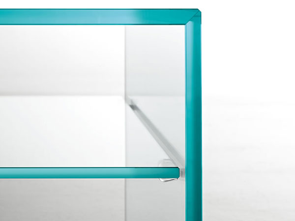 A bridge-like structure that is completed by a practical transparent or frosted glass undershelf.