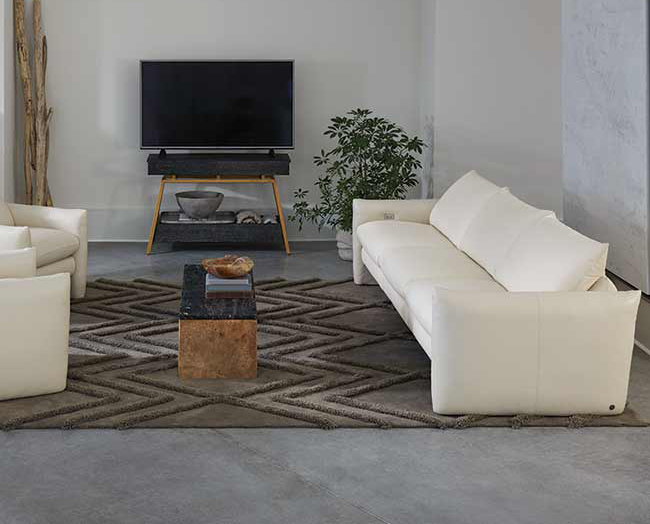 – Semi-attached back cushions with lumbar support feature a hidden spring for height adjustment and comfort cradling.