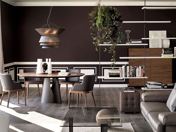 The modern tables in the Giant family give the dining room a contemporary and minimalist style. A sober stylistic imprint with a whimsical touch makes this design table a timeless piece of furniture. The round steel base has a precise slot that allows you to glimpse inside.