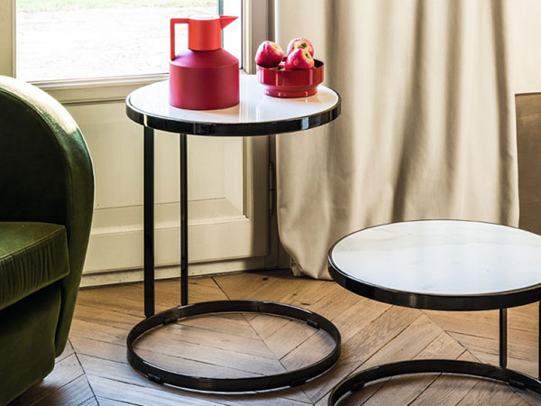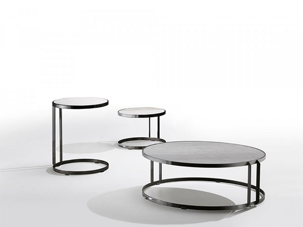 Giovane coffee table with round base in metal.