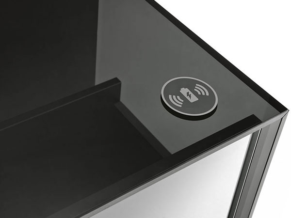 wooden drawers, equipped with soft closure and smoked mirror front. Gotham may be integrated with induction battery