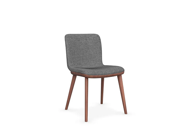 This chair brings a new interpretation to conviviality, also suitable for contract use. The solid wood frame has 4 elliptical conical legs, while the upholstered shell is large, comfortable, and covered with an anti-stain, anti-bacterial treated fabric. It is perfect for dining rooms, but also for meetings and contract rooms.