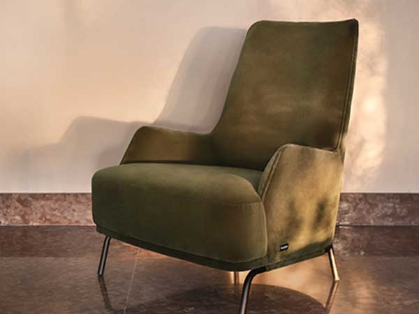 The family expands with the Hibea, an armchair with embracing lines and calibrated proportions suitable for relax or for conversing in complete tranquility.