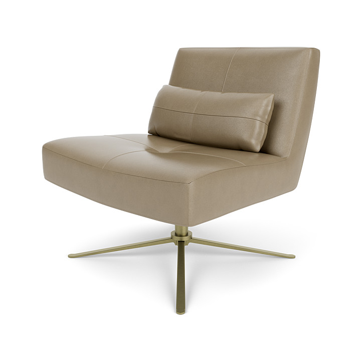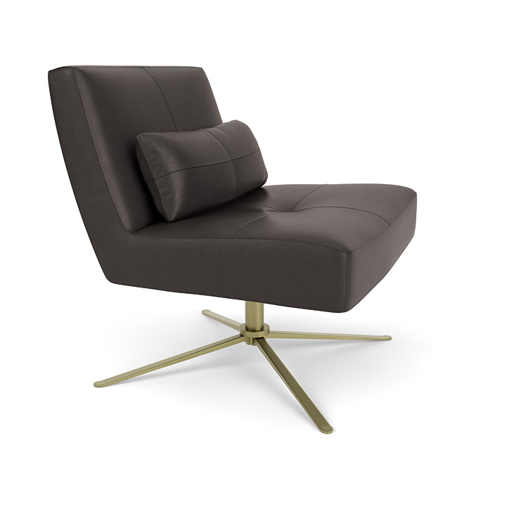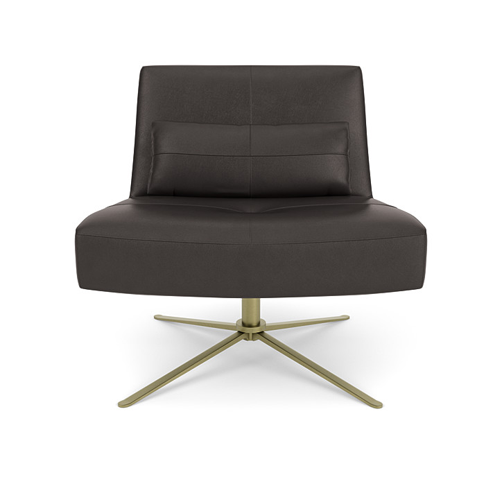 The armless swivel chair offers clean modern lines for easy-going charm and an ample seat for comfort. A stunning metal base completes the modern masterpiece.