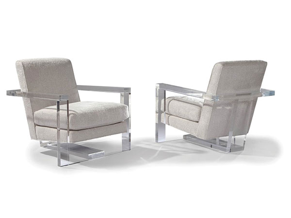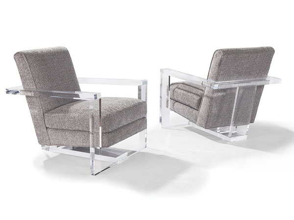Designed by Ransom Culler, our Roger lounge chair is one of our new contemporary classics. Featuring a sturdy, acrylic architectural frame and crisply tailored upholstery, Roger provides luxurious comfort while cutting stunning profiles from every angle. Select any of our in-house curated fabrics or leathers for upholstery.