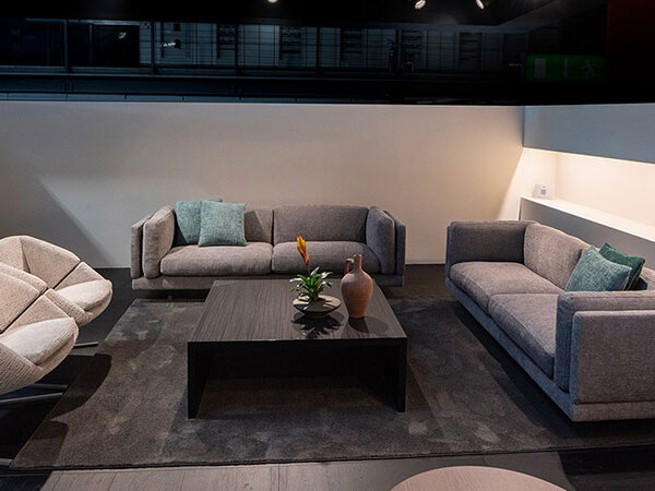 An enveloping, padded chair with an incorporated seat and back, supported by a chrome-plated metal trestle.