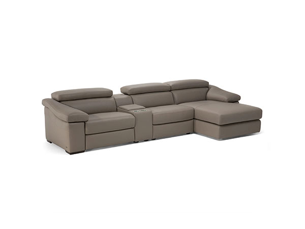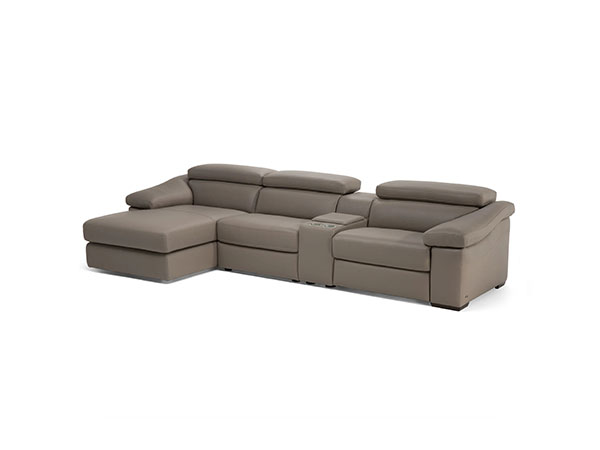 Save space while still enjoying a spacious seating arrangement with the Iola Sectional. This Iola Sectional is upholstered in 100 percent top grain leather, which is naturally soft, supple and smooth. The smoothness does not diminish over time and instead becomes more so as it ages, a trademark of top grain leather. This sectional features a two over two sofa cushion design that affords you with plenty of room to get comfortable. Situated on either side of the Iola sectional are two saddle arms. The saddle arms provide you with ample elbow room for you to lean up against. Headrests on this sofa are easy to move, making it so that you are in control of the way you get to relax on the sectional. Wide selection of top grain leathers available.