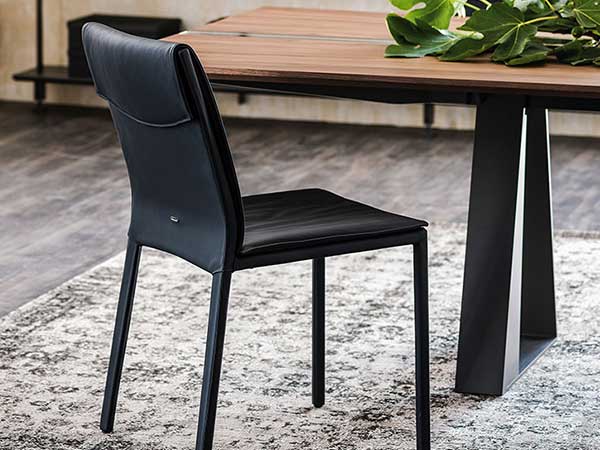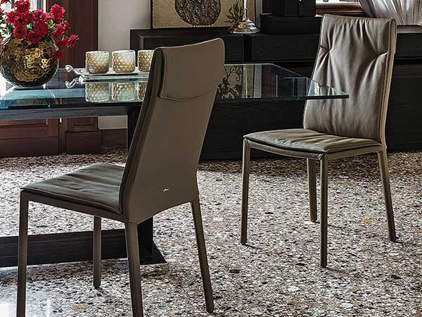 Chair with or without arms with steel frame completely covered in fabric, synthetic nubuck, micro nubuck, synthetic leather or soft leather as per sample card. The cover is not removable.