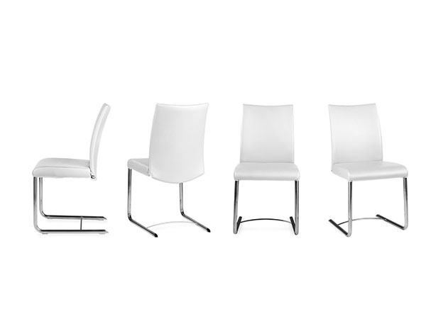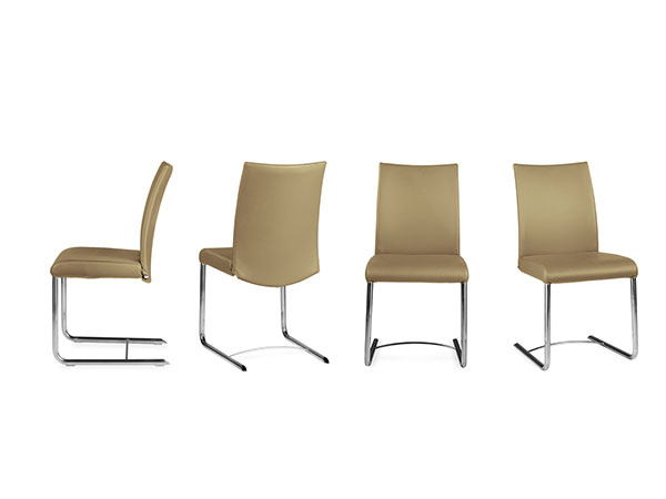 UPHOLSTERED CHAIR WITH FRAME IN PAINTED OR CHROMED STEEL. ERGONOMIC SEAT AND BACK COVERED WITH LEATHER. AVAILABLE WITH AUTOMATIC GAS SPRING “M” TO MODULATE THE GEOMETRY OF THE SEAT WITH PRECISION.