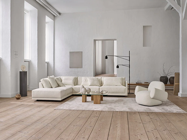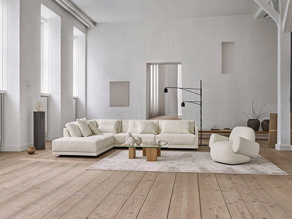 The seat is low and wide to ensure optimum comfort; and even though the sofa invites hours of relaxation, extra foam with fiberfill has been added to the seat cushions to ensure that you are able to get up again without any trouble. The short, concealed legs create an optical illusion, which makes it appear as though Drop is floating surreally a few centimeters above the living room floor. But don’t worry. The sofa has its feet planted firmly in a handwork tradition where aesthetics and practical experience don’t serve to contradict but are prerequisites.