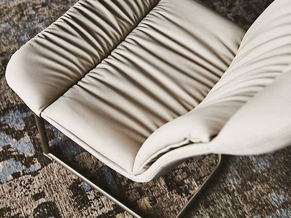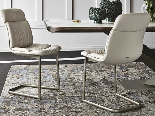 Chair with cantilever frame in titanium (GFM11), graphite (GFM69), white (GFM71) or black (GFM73) embossed lacquered steel. Upholstered seat in fabric, synthetic nubuck, micro nubuck, synthetic leather or soft leather as per sample card. The cover is not removable.