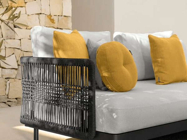 The multiple combinations allow you to create an outdoor space tailored to your needs. The elegance and lightness of this modular sofa give cleanliness and balance, adaptable to any context and inevitable in an outdoor space.