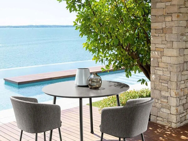 In line with the style of the entire collection, the Lam round dining table is characterized by a compact size, ideal to guest up to 6 people. The combination with the dining armchairs creates a space with airy and gentle shapes, offering the chance to enjoy relaxing moments in the outdoor area. The attention to details and the high-quality materials make this product a weather-resistant and timeless furniture piece.